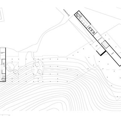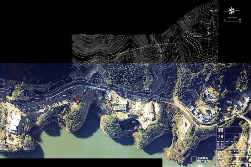 | De forma a ser compatível com a beleza do lugar, o edifício surge, respeitando e repondo a ondulação do terreno através de dois planos moldáveis simulando a forma natural do solo. Temos assim o solo natural, o solo e o tecto construídos. Entre as duas lajes deformadas e desencontradas rompem elementos vegetais, tal como blocos em madeira que correspondem a diferentes funções. Ao contrário do exterior, o interior revela se tímido e, ao mesmo tempo, curioso espreitando de quando em quando a paisagem interior ou exterior. Trata-se de um percurso único, fácil, simples e organizado que faz a distinção em duas zonas distintas a zona do átrio, auditórios e pesquisa/leitura e a área da exposição propriamente dita. A primeira, assume um caracter polivalente, sem regra, com percursos aliatórios, que se diluem entre si. Pelo contrário, a área de exposição permanente é bastante mais controlada e rígida. Esta é constituída por três caixas independentes que, têm por prioridade, apelar unicamente a observação e contemplação dos poemas e aguarelas (shi ga). Por este motivo as salas se assumem neutras, homogéneas e com grande controle de luz de forma a maximizar a qualidade da arte produzida pelo autor Tomihiro. Existem entre elas, momentos de pausa, de reflexão e também comtemplação (não das telas mas sim da paisagem). Há assim um jogo de emoções, ocultando umas vezes a paisagem, disfrutando outras vezes do mundo virgem envolvente. |
